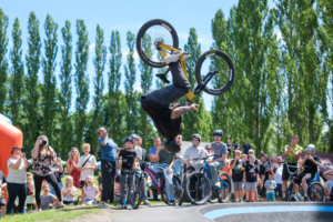 Zur Einweihung am 16.06.2024 konnten wir den Freestyler und Deutschlands Nr. 2 Mark Dieckmann begrüßen, der uns selbstverständlich auch sein Können auf der Pumptrack zeigte.